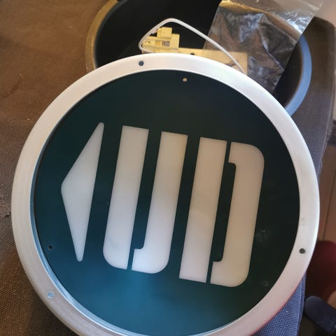 Plast ud skilte - 2 løse alu rammer - løse pærer - skruer ligger i pose