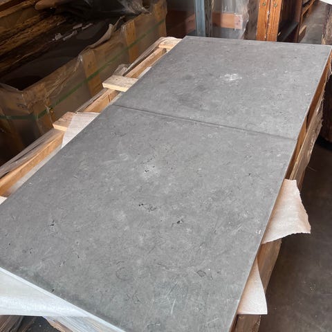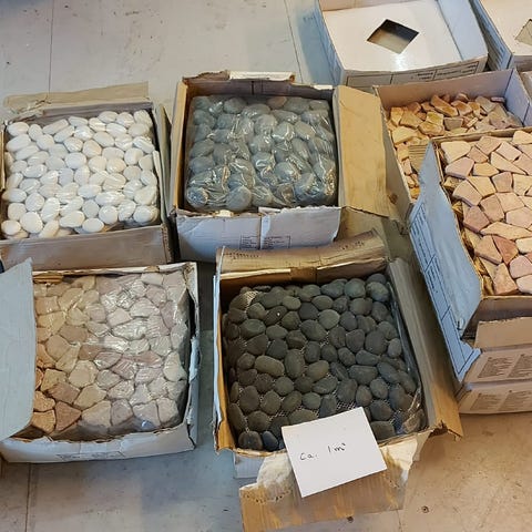 Fliserne er 2,5 cm tykke. De er taget op og er klar til genlægning.