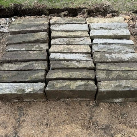 Der kan også tilkøbes 12 meter sandstens kantsten (40 × 20 × 10 cm) i samme type.