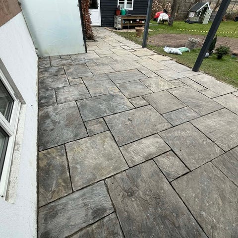 Vi sælger også ca. 34 m² matchende sandstensfliser i Dark Sandstone (se separat annonce).