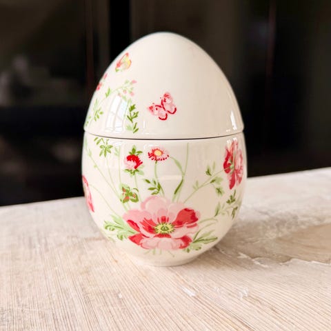 2 stk GreenGate æggebægre med guld blomst og kant.