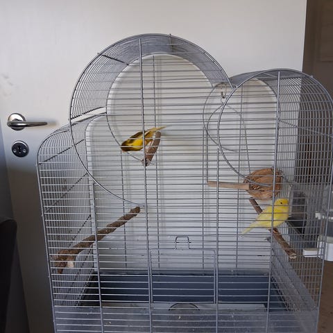 Kanariefugle med bur og alt udstyr sælges samlet