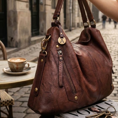 Vintage Adax Taske i brunt læder,