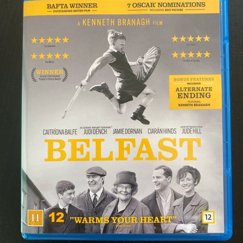 Kenneth Branaghs charmerende film Belfast fortæller historien om hans egen opvækst i 1960'ernes Belfast. Vi følger den unge dreng Buddy og hans arbejderklassefamilie, der forsøger at klare sig igennem en kaotisk tid midt i sammenstød mellem stridende grupperinger. Moderen i familie forsøger at holde sammen på deres lille hjem, faderen har et ønske om at slippe væk, og bedsteforældrene fungerer som et livsklogt anker i en vanskelig hverdag. Historien fortælles fra Buddys synsvinkel.