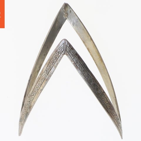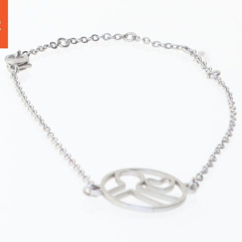 Dette er et armbånd lavet af metalstykker, der er sat sammen i en fleksibel bånd. Armbåndets diameter er Ø 5 cm. Det har et robust design, hvor metalstykkerne giver det et struktureret udseende.