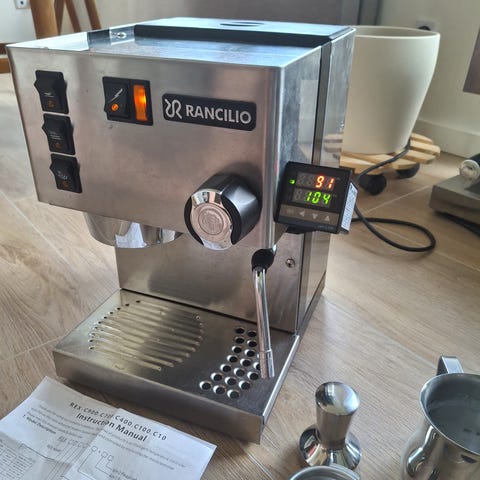 Den klassiske Rancilio Miss Silvia E er et af markedets mest elskede prosumer-espressomaskiner. "E"-versionen introducerede energisparefunktion og forbedret temperaturstabilitet – og er fortsat et yndet valg for den kaffeglade hjemmebryger, der vil have café-kvalitet.