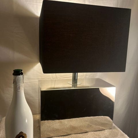 Standlampe med træstativ og forgyllet messing, højden justerbar fra 70 til 150 cm, sort/gullstribet skærm, E27 fatning, i god stand og sikkerhedstestet, oprindelse Nederlandene. Klik på den blå "gå til varen" knap, for at købe eller byde på denne vare. Den samlede pris vil blive vist inden du afgiver dit bud.
