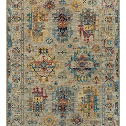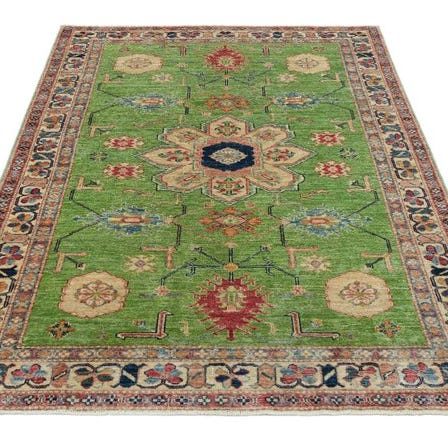 Denne håndknyttede designer-tæppe imponerer med sit fine Kazak-mønster og sin harmoniske farvekombination. De kunstfærdige geometriske motiver giver tæppet en tidløs elegance og gør det til et særligt blikfang i ethvert hjem.