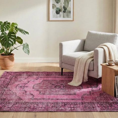 Oprindelse Tyrkiet, model Pink vintage, tæppe i uld på bomuld, størrelse 170 cm bred og 260 cm lang, lyserød, i meget god stand, professionelt renset, med certifikat. Klik på den blå "gå til varen" knap, for at købe eller byde på denne vare. Den samlede pris vil blive vist inden du afgiver dit bud.