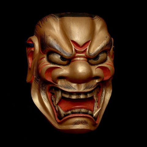 I Noh-masker betyder det en dragegudemasken, der lever i havet, har magiske kræfter, og navnet Kurohige kommer af dets sorte skæg. Den har en bredt åben mund og en fremspringende kæbe. Det er også en maske af en gud, der løber hen over landet, og repræsenterer også en slags rævegud eller fe, og har ingen øer.