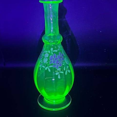 Kurv af uraniumglas – Art déco – Grøn vaselinaglas – UV-reaktiv