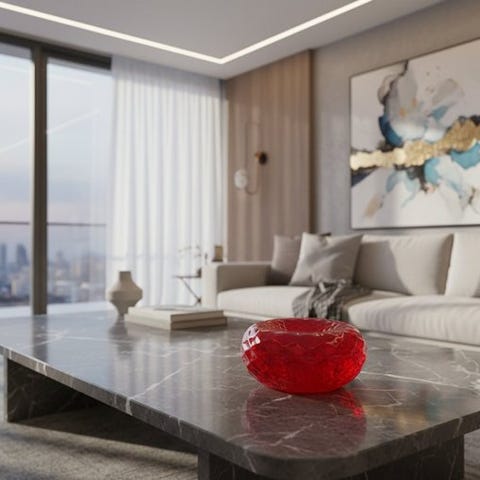 Val Saint Lambert krystallygter i rosa, Liège, Belgien, fra 1960–1970, Moderne du milieu de siècle-stil, enkelt stykke, højde 17 cm, bredde 24 cm, dybde 8 cm, vægt 8,25 kg, i fremragende stand. Klik på den blå "gå til varen" knap, for at købe eller byde på denne vare. Den samlede pris vil blive vist inden du afgiver dit bud.