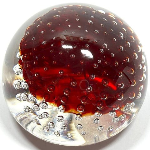 Fængslende kunstværk i ægte Murano-glas: et imponerende fermacarte i afskåret kugleform, berømt for sin livlige og komplekse bearbejdning. En rigtig mosaik af lys og farver indkapslet i en tyk og tung klar krystalbold.