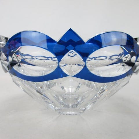 Art Deco-stil presset glasdesign med geometrisk mønster og bølget kant.