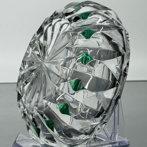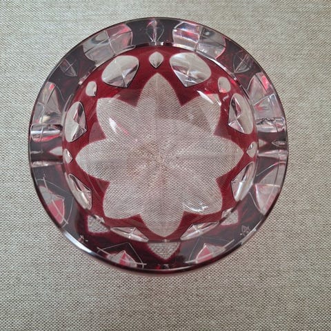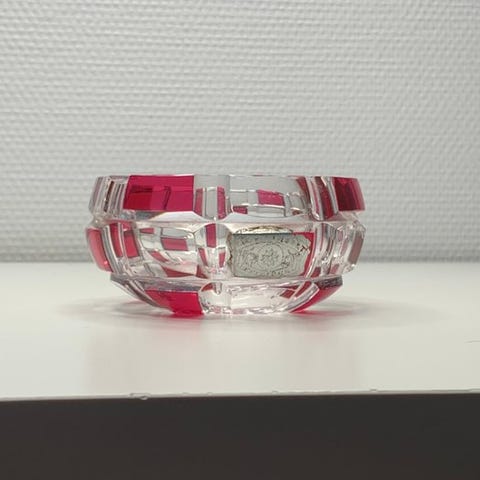 Røgmsg til Myrtil-cigaretter fra Val et Cie, produceret ca. 1936–1942, i Ouraline-glas, mål 13 × 11 × 2,5 cm, vægt ca. 250 g, i god stand med aldersrelaterede brugsspor og en lille afslag synlig på billederne. Klik på den blå "gå til varen" knap, for at købe eller byde på denne vare. Den samlede pris vil blive vist inden du afgiver dit bud.