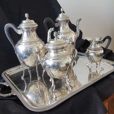 OTTE Avon-te serier med tilhørende underkopper fra Paragon, Tree of Kashmir-design, cirka 1950–1960, porcelæn fra Storbritannien, i god stand med mindre alderstegn, ingen afskårne kanter eller hårdspændinger, gyldne kanter i særdeles god stand. Klik på den blå "gå til varen" knap, for at købe eller byde på denne vare. Den samlede pris vil blive vist inden du afgiver dit bud.