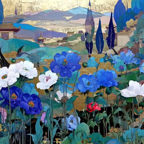 Et værk skabt på professionelt lærred ved hjælp af giclée-tryk. Digitalt kunstværk, der bruger nutidige medier og kunstig intelligens.