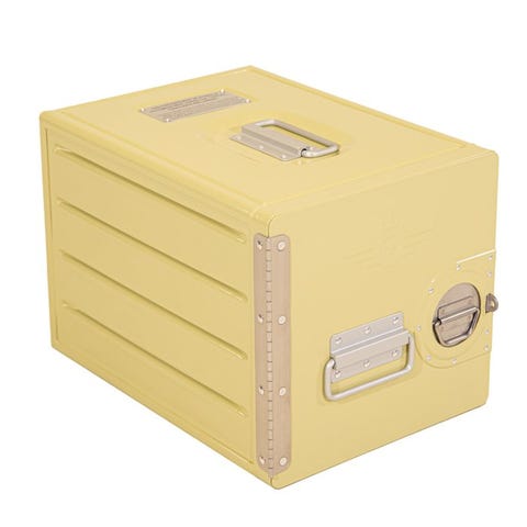 Denne XL flygalley-container er gjort om til en usædvanlig smuk og dekorativ opbevaringsenhed.