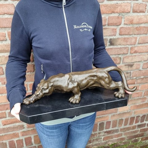 Bronzesstatue af en klog ugle på marmorbase i Art Deco-stilen, u-signeret, 42 cm høj, 15 cm bred, 14 cm dyb, vægt 5,6 kg, fremstillet i Europa. Klik på den blå "gå til varen" knap, for at købe eller byde på denne vare. Den samlede pris vil blive vist inden du afgiver dit bud.