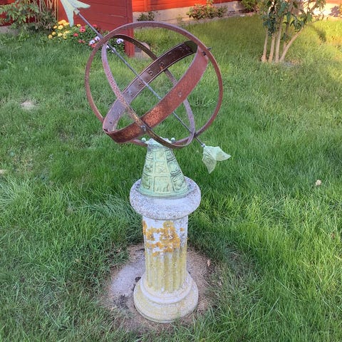 Støbejern solur, skønnet periode 2020’erne, dimensioner ca. 28 × 26 × 26 cm, i funktion og i ny tilstand. Klik på den blå "gå til varen" knap, for at købe eller byde på denne vare. Den samlede pris vil blive vist inden du afgiver dit bud.