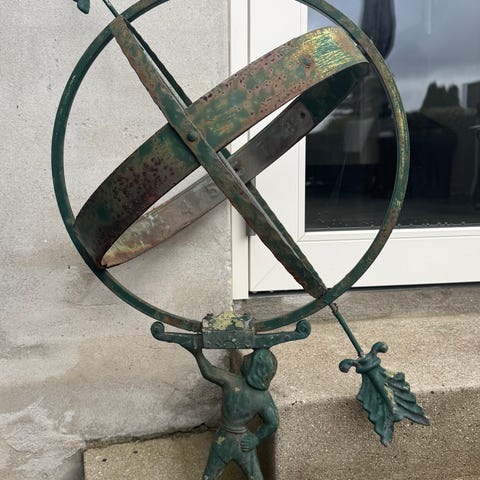 Smukt støbejerns solur lavet af støbejern. Anslået oprindelse: Europa. Anslået periode: seneste 21. århundrede. Mål: omkring 28 cm høj og 26 cm i diameter. Varen bliver sendt ordentligt pakket og som rekommanderet og forsikret forsendelse. Emballageomkostningerne er indregnet i de højere forsendelsesomkostninger på grund af emballagemateriale.
