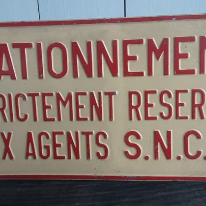 Originalt PTT stort emaljeret retningsskilt af stål, fra Frankrig, anslået periode 1970–1980, Toulouse Occitane oprindelse, 25 cm høj, 200 cm bred, 4,5 kg, betegnet Grande Plaque émaillée directionnelle PTT, i god stand med enkelte slidmærker på grund af alder. Klik på den blå "gå til varen" knap, for at købe eller byde på denne vare. Den samlede pris vil blive vist inden du afgiver dit bud.
