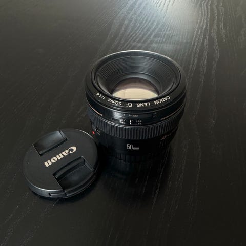 Et af Canons mest elskede objektiver – den klassiske 50mm f/1.4. Leverer skarpe billeder og er særdeles velegnet til portrætfotografering og i dårligt lys.