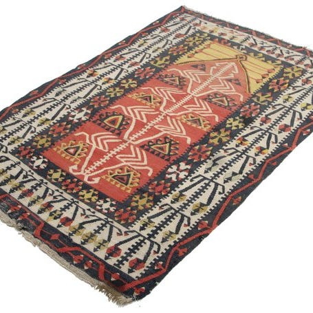 Denne håndvævede tyrkiske Kelim er et ægte stykke anatolisk vævskunst. Med sine klare farver og symbolsrige mønstre afspejler den sjælen i nomadekulturen. Fremstillet af ren uld og naturlige farvestoffer, overbeviser den med sin fine struktur og unikke udstråling. Uanset om den hænger som vægdekoration, som gulvbelægning eller som dekorativt element – bringer denne Kelim varme, historie og stil ind i ethvert hjem.