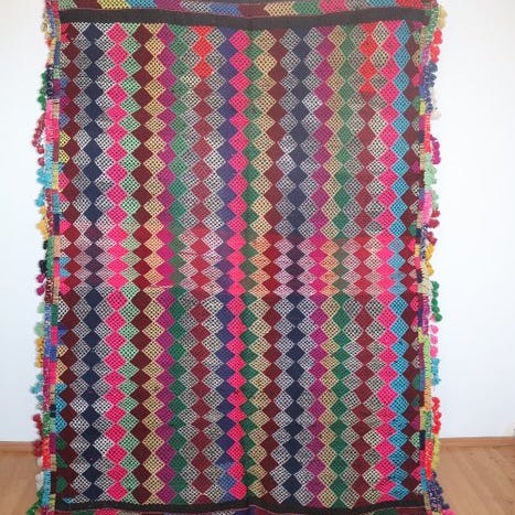 Det er et tæppe, der væves efter traditionelle motiver fra Yuruk-regionen.