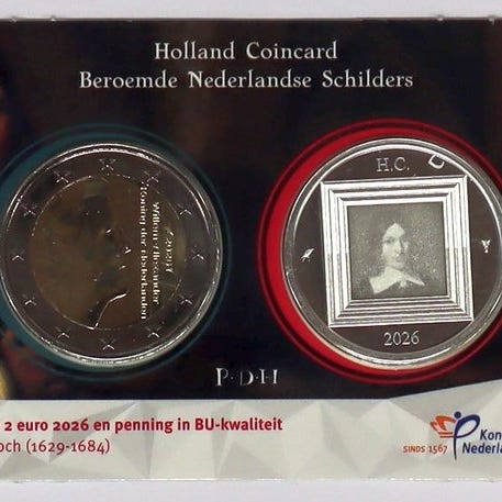 Nederland, Holland Coincard 2025 2 euro + mønt, Judith Leyster. 10 stk.