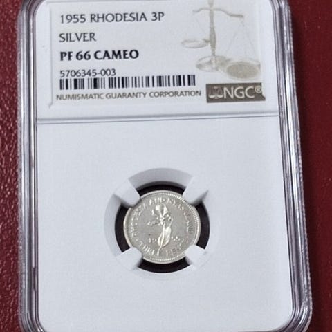 Rhodesia og Nyasaland, Sydafrika. Elizabeth II. 3 Pence 1955 - NGC PF62 KEY D...