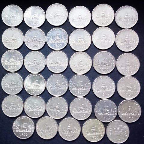flottt lot bestående af 20 mønter i sølv på 500 Lire, udstedt af Rom-myntværket i 1961 til at mindes det første hundredeår af Italiens forenede enhed (1861-1961). Disse mønter, almindeligvis kendt som "Quadriga Veloce", repræsenterer et af de mest ikoniske symboler i numismatikken for den italienske republik.