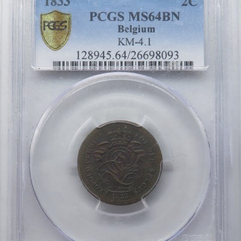 België 1851 Leopold I 5-öre kobbermønt, 10 g, 28 mm, vurderet af NGC MS64 BN. Klik på den blå "gå til varen" knap, for at købe eller byde på denne vare. Den samlede pris vil blive vist inden du afgiver dit bud.