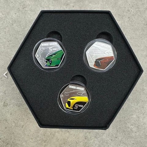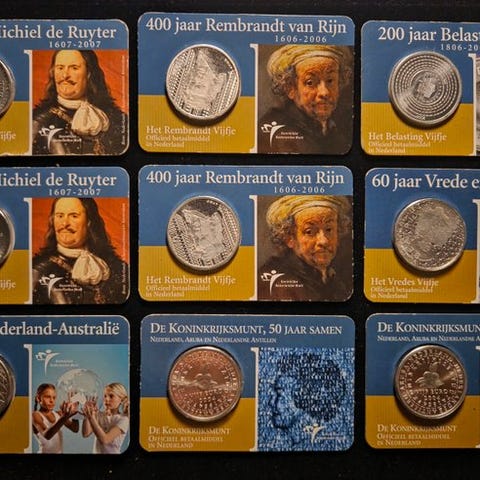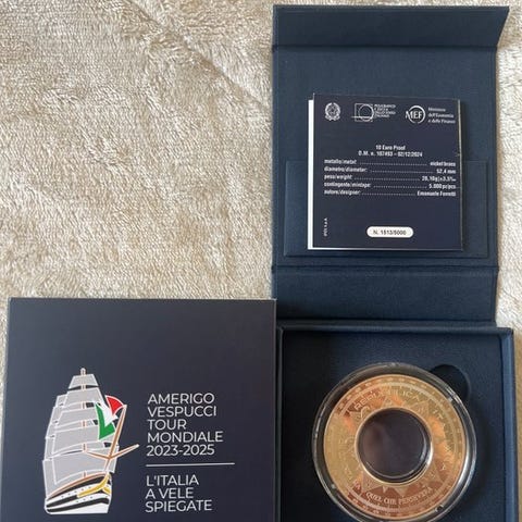 Et sæt af tre 5 € mønter i fior di conio (fdc) i ægte sølv dedikeret til designeren Giorgio Armani, indplaceret i kategorien Serien Italienske Ekscelencer - år 2023. Æsken er lavet til numismatisk samlerobjekt og derfor ikke sat på markedet. De tre mønter vejer i alt 54 gram 925/1000 sølv, har en diameter på 32 millimeter, og sættet har et oplag på 7000 styk. Perfekte forhold, leveres med æske, inderskal og garantibevis (som tydeligt fremgår af fotografierne!!!)