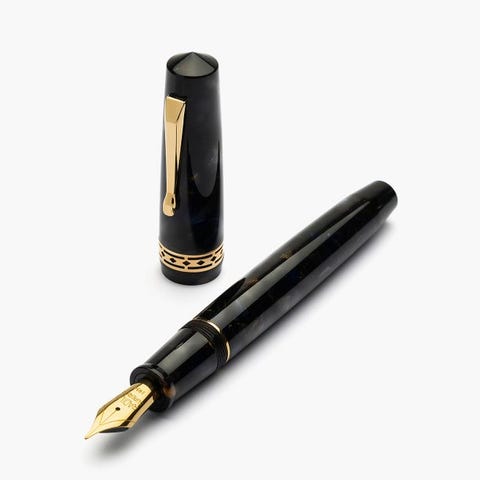 Radius 1934 Minerale Gold Trim fyldepen af italiensk harpiks, diameter 15,5 mm, længde 142 mm, spids F, produceret i Italien, i nyskick og funktionsdygtig, med original æske og papirer. Klik på den blå "gå til varen" knap, for at købe eller byde på denne vare. Den samlede pris vil blive vist inden du afgiver dit bud.