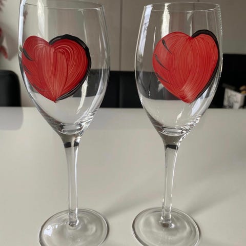 2 stk - vin glas , tulipan facon , blå stilk , fod gul/ klart glas fod , højde 21 cm , "skål " højde 13 cm diameter top 7 cm , fin stand ingen skår