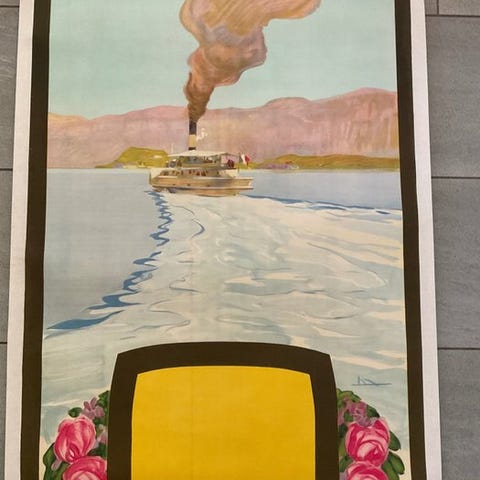 Ekstraordinært og meget sjældent reklameplakat for Distillerie Italiane – Sektion Apparecchi Milano, tilskrevet den store mester af Liberty-plakatkunst Leopoldo Metlicovitz, en af de mest fascinerende figurer i italiensk grafisk design mellem slutningen af det 19. århundrede og begyndelsen af det 20. århundrede.