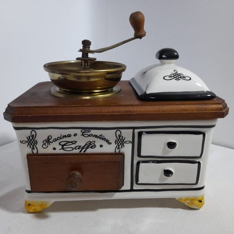 Kombinationen af porcelæn, metal og glas og det elegante design gør denne kværn både funktionel og dekorativ.