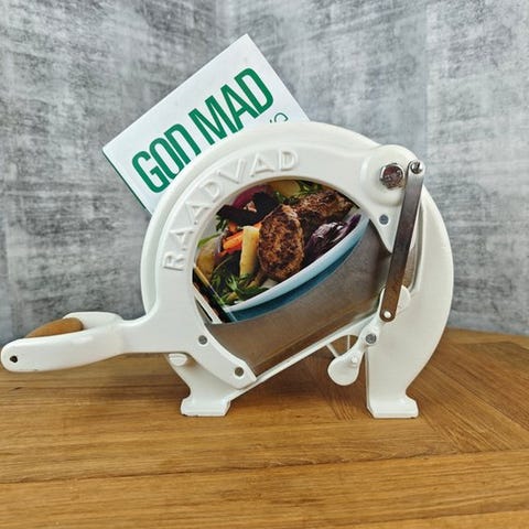 Denne brødskæremaskine, type 294, er designet af Ove Larsen og produceret af Raadvad i Danmark i 1980'erne til 1990'erne.