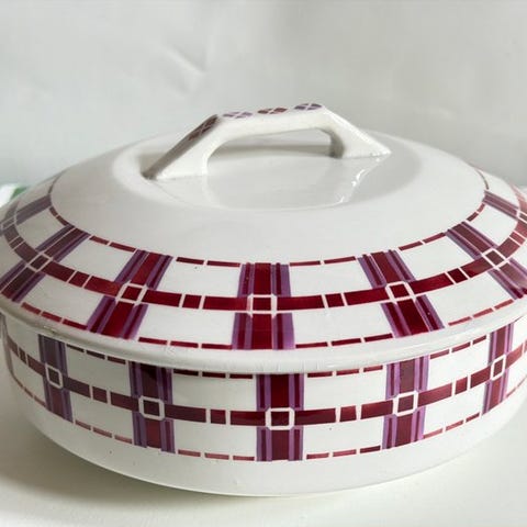 Bakke med håndtag - Bredde 30 x Længde 26,5 cm ( tallerkener - Ø 19 cm i service., fremstillet af det eksklusive franske porcelanshus Orchies Moulins des Louis & Hamage - ægthedscertifikatet på hver plade. Fremragende vintage-tilstand - uden brud, med brugsmærker indeni skålen.