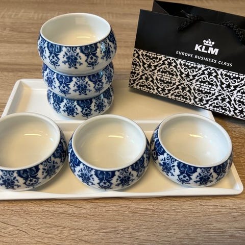 6 KLM Business Class kopper, designet af den internationalt anerkendte hollandske designer Marcel Wanders.