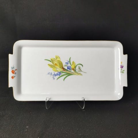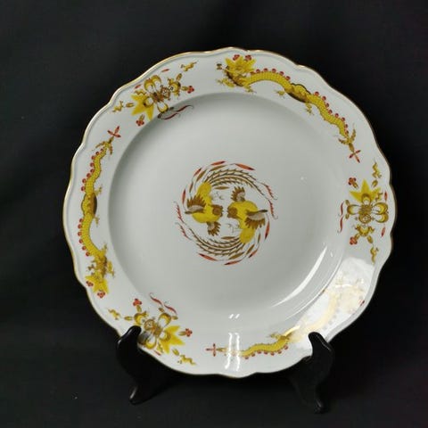 Velkommen! Vi præsenterer en Meissen-skål med gul drage-mønster.