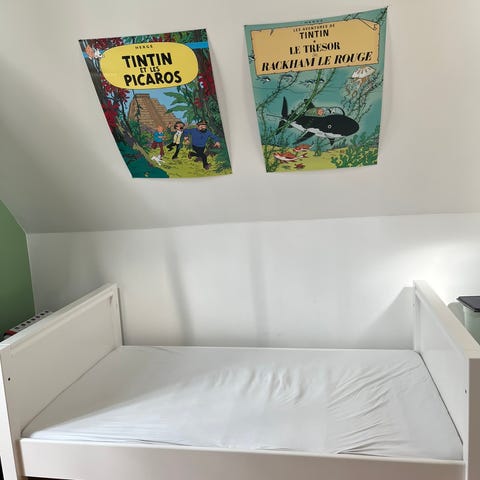 Leander junior seng med madras - rullemadras - 2 lagner og en side der er en sengehest