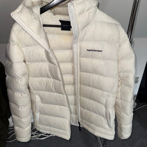 Peak Performance vinterjakke til kvinder i størrelse S. Jakken er sort og fremstillet i polyester. Modellen har hætte og gennemgående lynlås foran. Der er synlige sidelommer med lynlås. Vinterjakken er vatteret for at give varme og egner sig til brug i de kolde måneder.