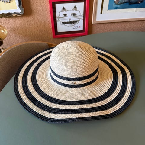 Hat i brun i one size. Hatten har bred skygge og er fremstillet i flettet polyester, som giver en let og formstabil struktur. Indvendigt bånd sikrer bedre pasform omkring hovedet. Velegnet som solhat til hverdagsbrug eller ferie, hvor der ønskes skygge for solen.