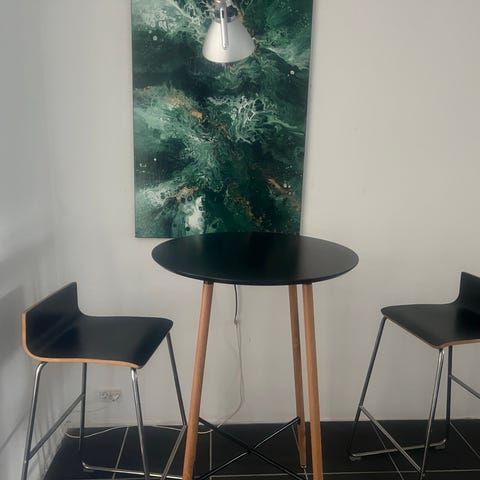 Flot solidt træbarbord , med flotte barstole