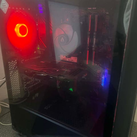 I7 6700. 16 GB RAM, Gigabyte RX590 8GB et virkelig godt kort som kan spille alle spil i flot detaljegrad i 1080p. Understøtter Hardware kryptering som spillet Valorant bla. kræver, og som kun understøttes på nyre bundkort/CPU'er.
