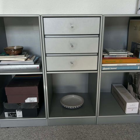 6 stk. afmonterede Montana låger med greb og lås (ikke funktionel) måler 33x33.