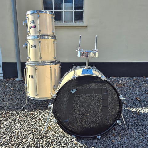 Mapex Horizon trommesæt med dobbelt stortromme, 5 tammer og 1 lilletromme plus hardware.