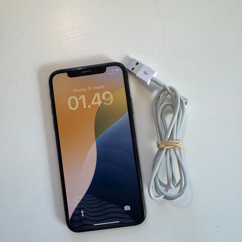 Apple iPhone X smartphone med 256 GB intern hukommelse. Telefonen fremstår i sort med glasbagside og stålkant. På billederne ses både for- og bagside samt kanter og knapper. Altid været i cover og jeg kan ikke se nogen ridser på kanterne.